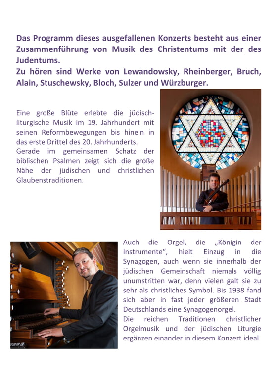 Die reichen Traditionen christlicher Orgelmusik und der jüdischen Liturgie ergänzen einander in diesem Konzert ideal.