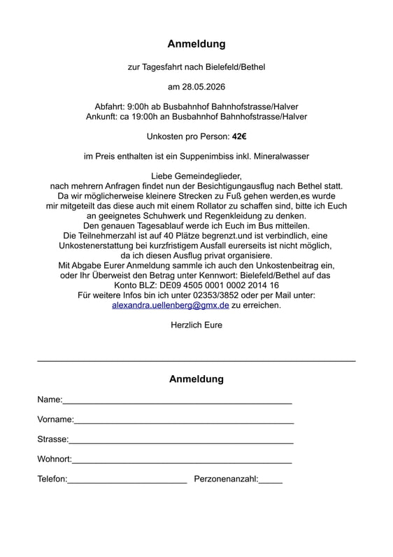 Einladung zu einer Tagesfahrt nach Bielefeld/Bethel am 28.05.2026