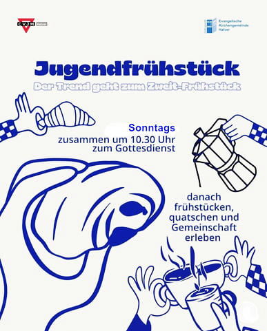 Einmal im Monat laden wir dich ein zum Jugendfrühstück im Gemeindehaus. Wir gehen zusammen um 10:30 Uhr in den Gottedienst und danach gemeinsam zum gemütlichen frühstücken und quatschen rüber ins Gemeindehaus, wo der Tisch schon gedeckt ist und Gemeinschaft auf dich wartet. Lass dich einladen.